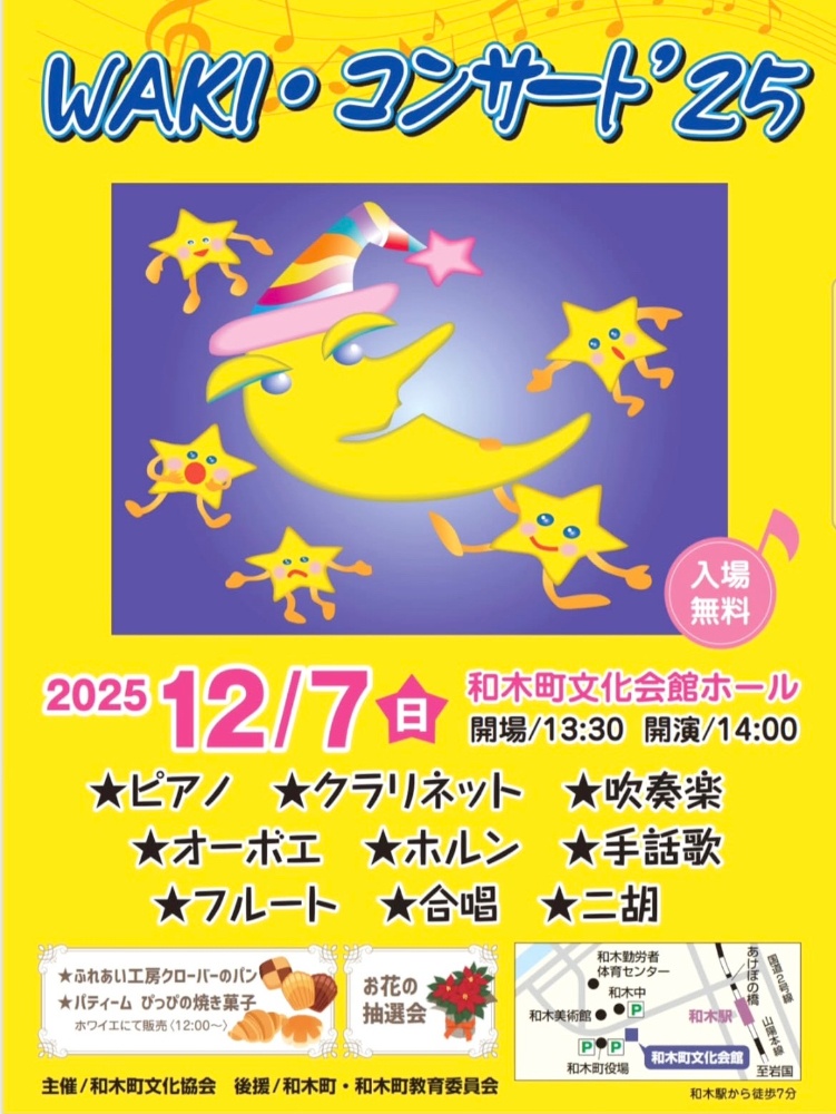 2025年12/7(土)WAKI・コンサート’25♪ サクソフォン柳本深月×ソプラノ柴田優香×ピアノ松﨑愛実×ぴあちゅーれkids☆まゆ・さき・しの・ひまり・あんり・みほ・なるみ☆ 和木町文化会館ホール♪