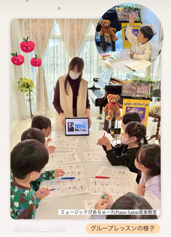 | 🎀こんな方にオススメ🎀 ♪グループでのイベント出演から人前に慣れたい ♪鍵盤楽器に親しみ部分奏で音楽アンサンブルを楽しみたい ♪演奏力を生かしてピアノアンサンブルを楽しみたい ♪気軽に習い事と発表の場をバランスよく経験したい ♪地域貢献活動の場でプロ奏者と共演体験したい <ぴあちゅーれコンサートkids出演ステージ例> 🎼5/24 ピティナステップ/団体登録(参加費別途)希望者* 🎼7月 人絹町に夏を呼ぶ!!街角コンサート 🎼10月 発表会コンサート/共演ステージ(参加費別途)希望者* 🎼11月 JR岩国駅東口点灯式オープニングアクト 🎼12月 WAKI・コンサート/小学生以上対象 🎼12月 デルタミネ・イルミネーション 🎹脳トレピアノ®︎kids+ピアノアンサンブルコース(定員:各8名) ピアノアンサンブルを軸に発想力豊かな総合音楽レッスン♪ クラシックからポピュラーまで幅広いジャンルで音楽体験! ☆月曜16:00〜16:50 ミックスエイジ/月謝6000円/月2回 ☆月曜17:00〜17:50 ミックスエイジ/月謝6000円/月2回 ※ミックスエイジ→幼中〜小学生対象 ☆月曜18:00〜19:00 ピアノ中級〜中高生/月1回3000円 ※ピアノ中級→小学生(ブルグミュラー程度)〜中高生対象 |